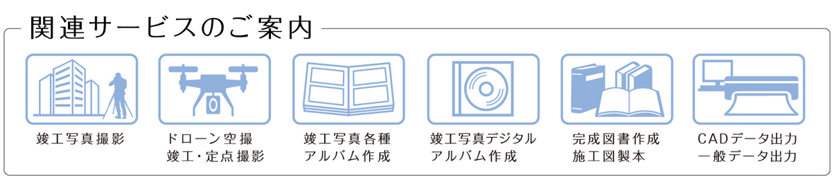 | 各省庁や地方自治体、特殊法人等が発注する土木工事、営繕工事、調査、設計の電子納品業務において、着工前の事前協議への同行から、電子納品成果品の作成、オンライン電子納品に至るまでの業務を、弊社の専門スタッフ(建設CALS/ECインストラクター)が、総合的にサポートいたします。 |